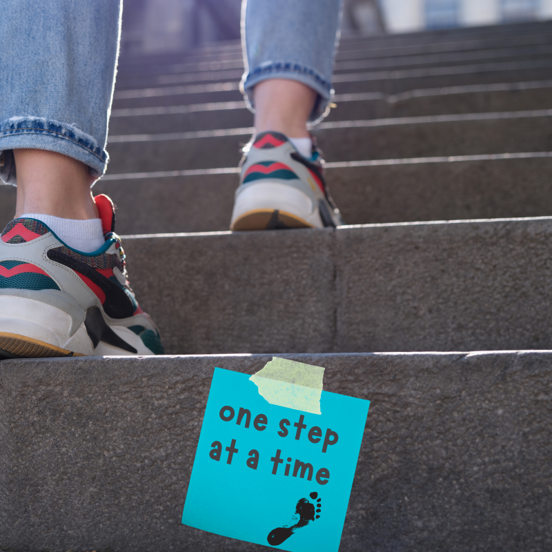 Maar wel stap voor stap en als het nodig is... met pauzes.